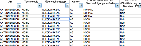 «Sehr zu empfehlen ist das Excel-Sheet, aus dem detailliertere Informationen hervorgehen und das Ergebnisse zu Tage fördert, die zumindest erstaunlich sind. So erfreuen sich etwa die Antennensuchläufe immer grösserer Beliebtheit, obwohl etliche Kantone (zum Beispiel Zürich im Jahr 2011) ganz darauf zu verzichten scheinen.»
