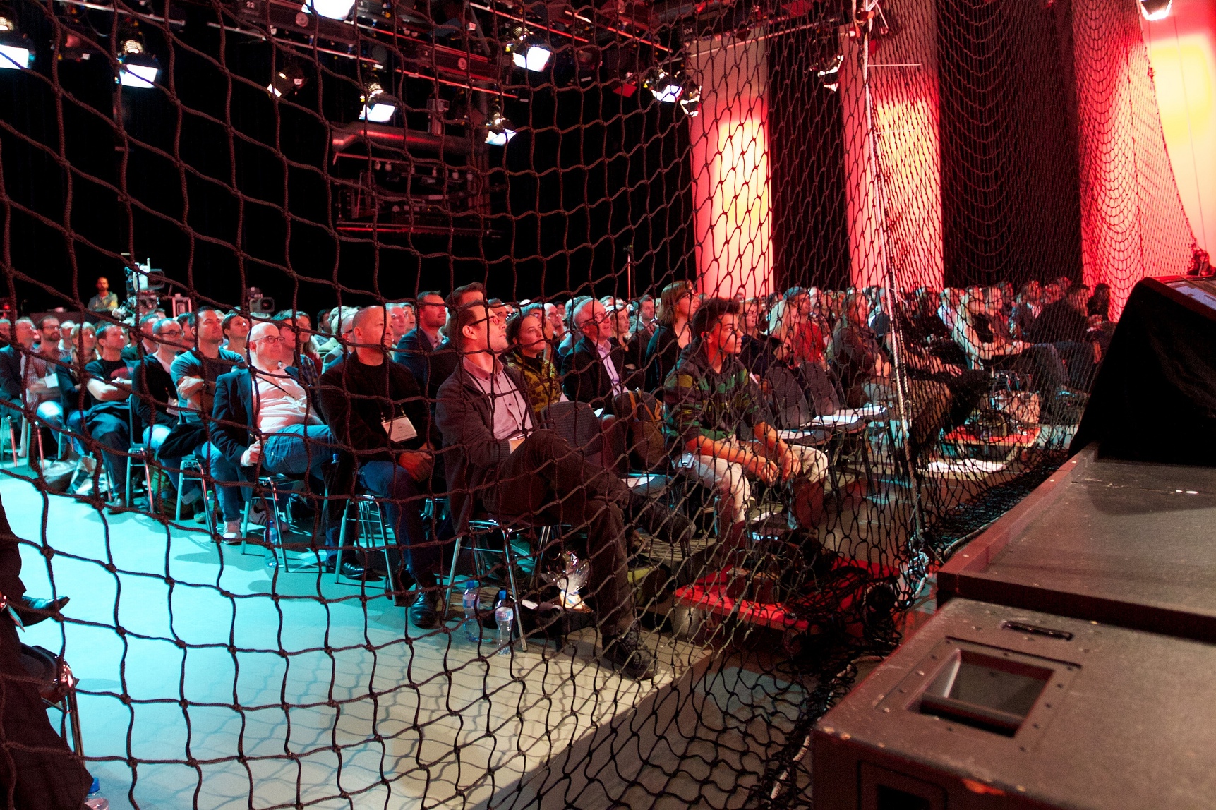 Im Gebäudeinnern wurden weitere Vorsichtsmassnahmen getroffen um das Publikum bei der Präsentation zu schützen: So flog die Mini-Drohne zwar teilweise autonom, aber es bestand immer die Möglichkeit zur manuellen Kontrolle mittels Fernsteuerung. Und wäre die Drohne wider Erwarten ausser Kontrolle geraten, hätte ein Netz vor der Bühne das Publikum geschützt – Letzteres ist auch Bestandteil der «Empfehlungen für den Einsatz von Drohnen», die TEDxZurich 2012-Presenting Partner SRF/tpc im Sommer 2012 erlassen hatte.