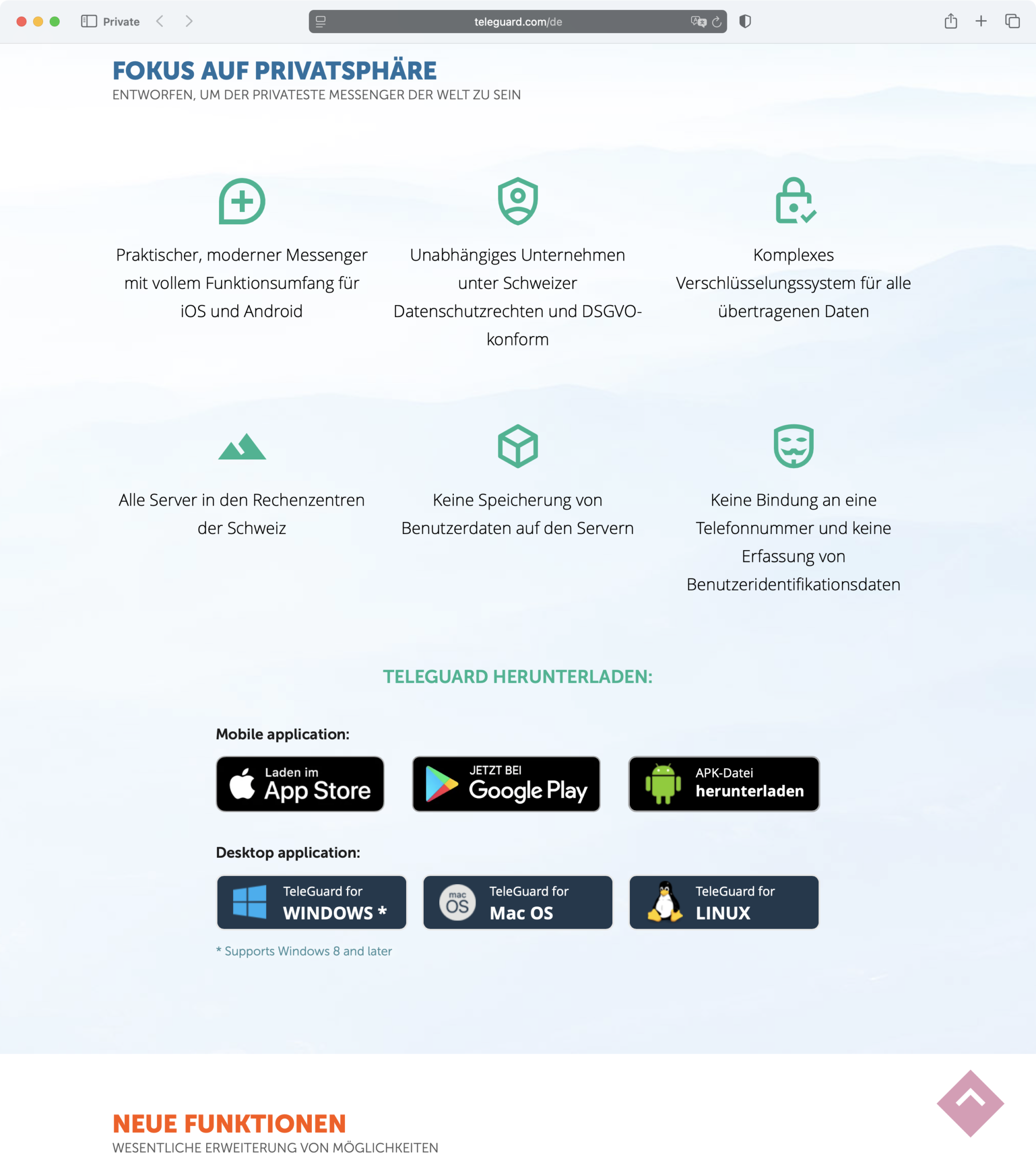 Der Messenger TeleGuard gehört zum Angebot der schweizerischen Swisscows AG.