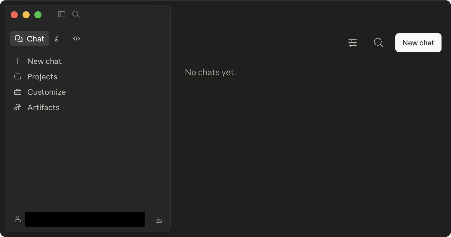 Screenshot: Claude für MacOS ohne Chats